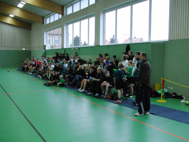 Spielfeldmarkierungen sind vorhanden für: Handball. Volleyball, Basketball, Badminton, Hockey