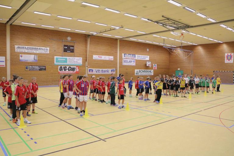 Spielfeldmarkierungen sind vorhanden für: Handball, Volleyball, Basketball, Badminton